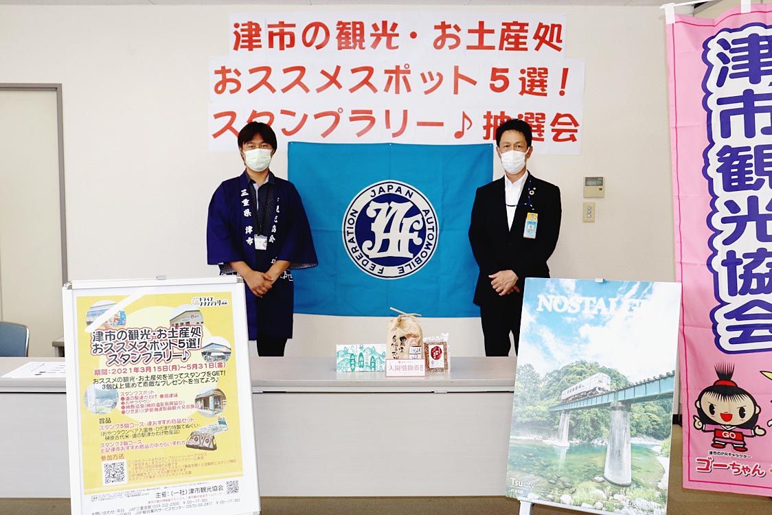 【津】日本自動車連盟(JAF)三重支部(川喜田久支部長)は、地域振興の一環として開催された「津市の観光・お土産処おススメスポット5選!スタンプラリー」の抽選会を行った=写真。 このイベントは、ドライブ観光客の誘致、観光振興などを目的に津市...