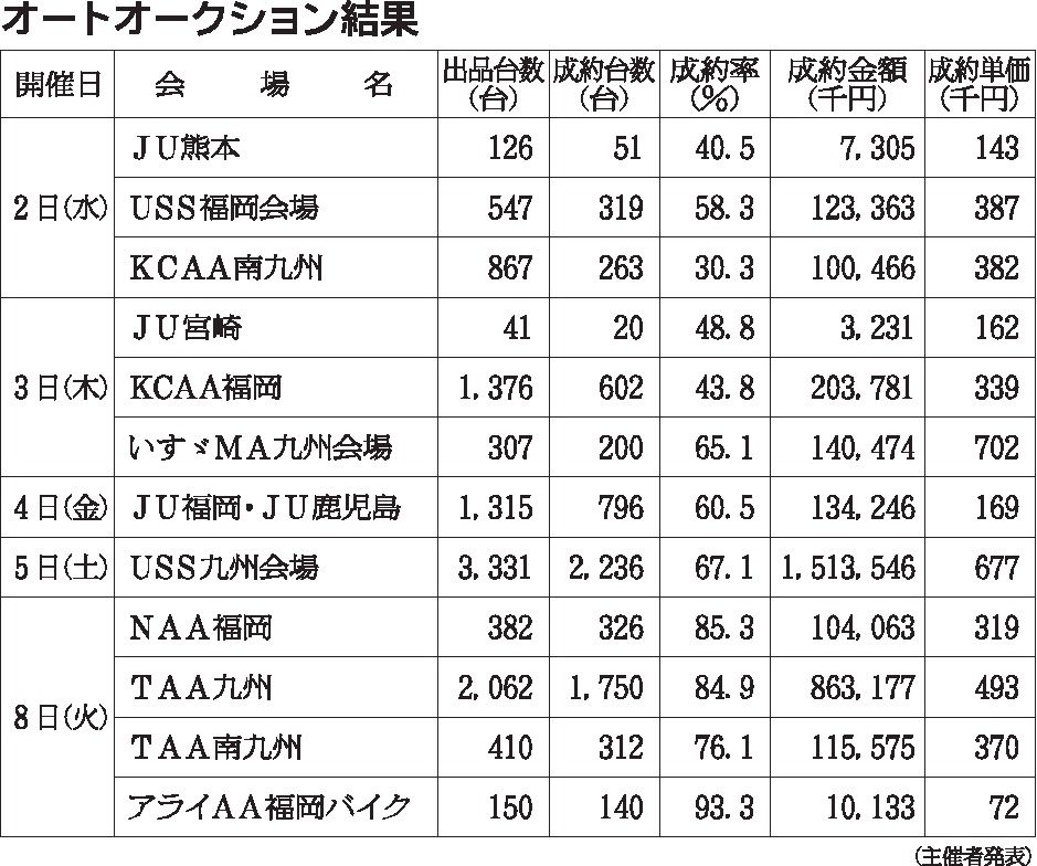 〈オートオークション結果〉九州地区 2020/9/2~8