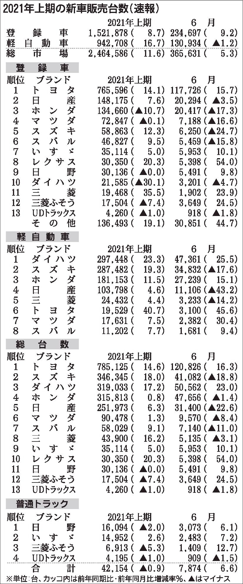 2021年6月の国内新車販売台数、5.3%のプラス 半導体不足で鈍い回復ペース 2019年比では19%減