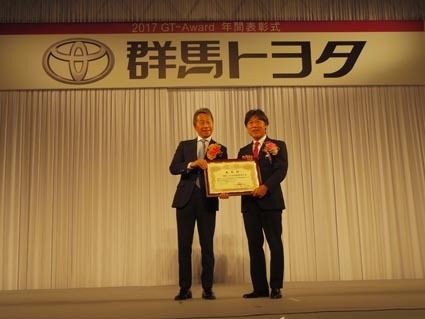 【前橋】群馬トヨタ(横田衛社長)は19日、群馬県高崎市のビエント高崎ビッグキューブで年間表彰式「2017GT―Award」を開催した。今回の表彰式ではトヨタ自動車の2017年販売店表彰で同社が受賞した「J―ReBORN賞」と「準総合表彰(...