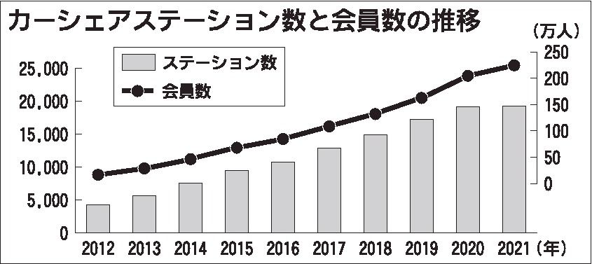 右肩上がりで拡大してきたカーシェアリングのステーション数が伸び悩んでいる。交通エコロジー・モビリティ財団(岩村敬会長)の調査によると、2021年3月末のカーシェアステーション数は1万9281カ所で、20年3月末と比べて0・8%の増加にとど...