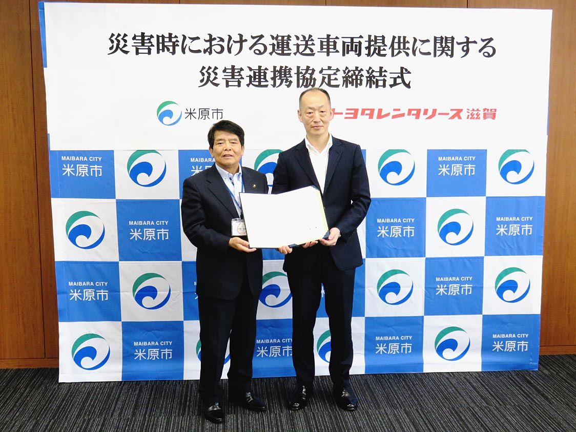 トヨタレンタリース滋賀、米原市と災害協定 運送車両を提供