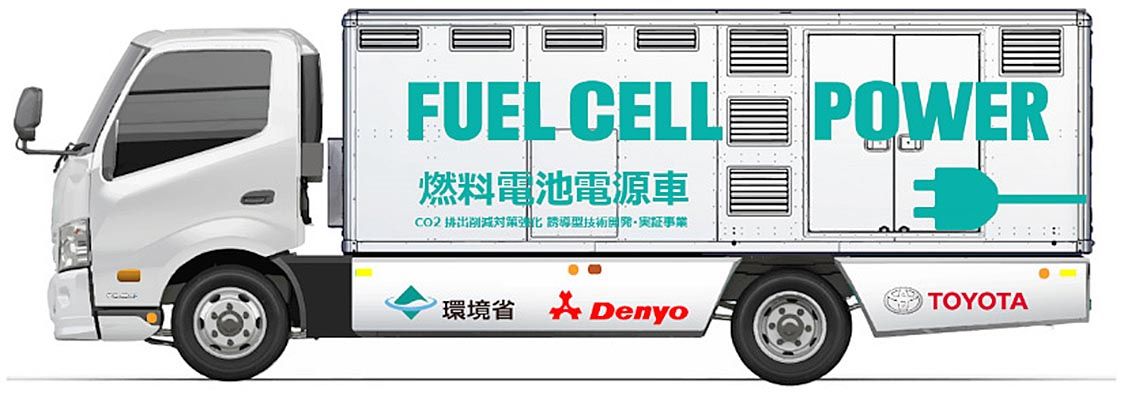 トヨタ自動車と発電機などを手がけるデンヨーは17日、水素を動力源とした移動電源車=完成イメージ=を開発し、実証事業に入ると発表した。 トヨタ「ダイナ」をベースに燃料電池(FC)スタックや27本の高圧水素タンク、関連機器を架装した。燃料電池...