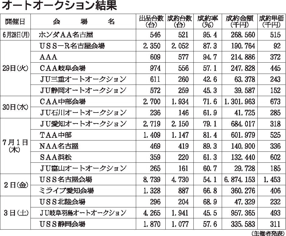〈オートオークション結果〉中部地区 2021/6/28~7/3