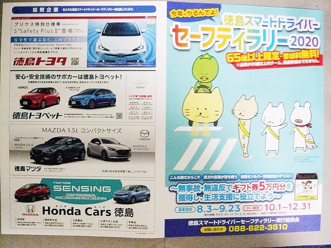 徳島県や徳島県警察、県内自動車団体などで組織する徳島スマートドライバーセーフティーラリー実行委員会は、10月1日から開始する同ラリーの告知・申し込みパンフレットを作成した。広告面は県内ディーラーからの出稿を全面採用した。 同ラリーは県民の...