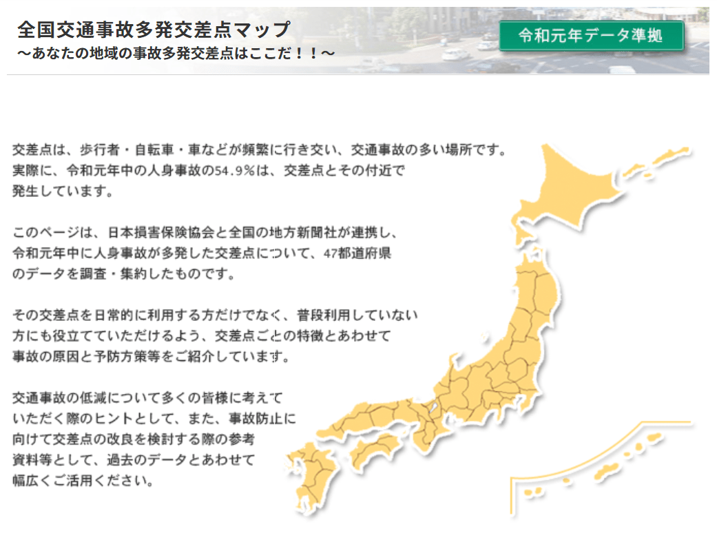 日本損保協会、「全国交通事故多発交差点マップ」を更新 2019年の事故を反映