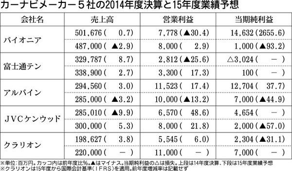 カーナビゲーションメーカー5社の2014年度決算は、円安効果や海外での自動車販売の好調などによって4社が増収を果たした。15年度は円安の一段の進行や欧州の低迷、中国の減速など懸念材料はあるものの、3社が増収増益を見込む。先進運転支援システ...