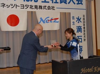 ネッツトヨタ北見(栗山太郎社長)はこのほど、全社員大会の席上で、平昌冬季オリンピックの女子カーリングで銅メダルに輝いたLS北見の選手で同社勤務の吉田知那美さんが凱旋報告した。オールネッツの応援に感謝し「5月開催の日本代表選手権に勝ち抜いて...