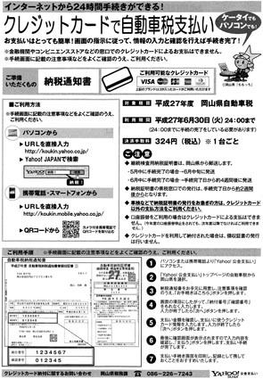 中四国地区でも、自動車税・軽自動車税のクレジットカードによる納付が少しずつ浸透してきた。今年度からクレジット納付制度を導入した岡山県では「県民からの問い合わせが増えた」(税務課)とその関心度の高さを指摘し、自動車税収全体の2%程度がクレジ...