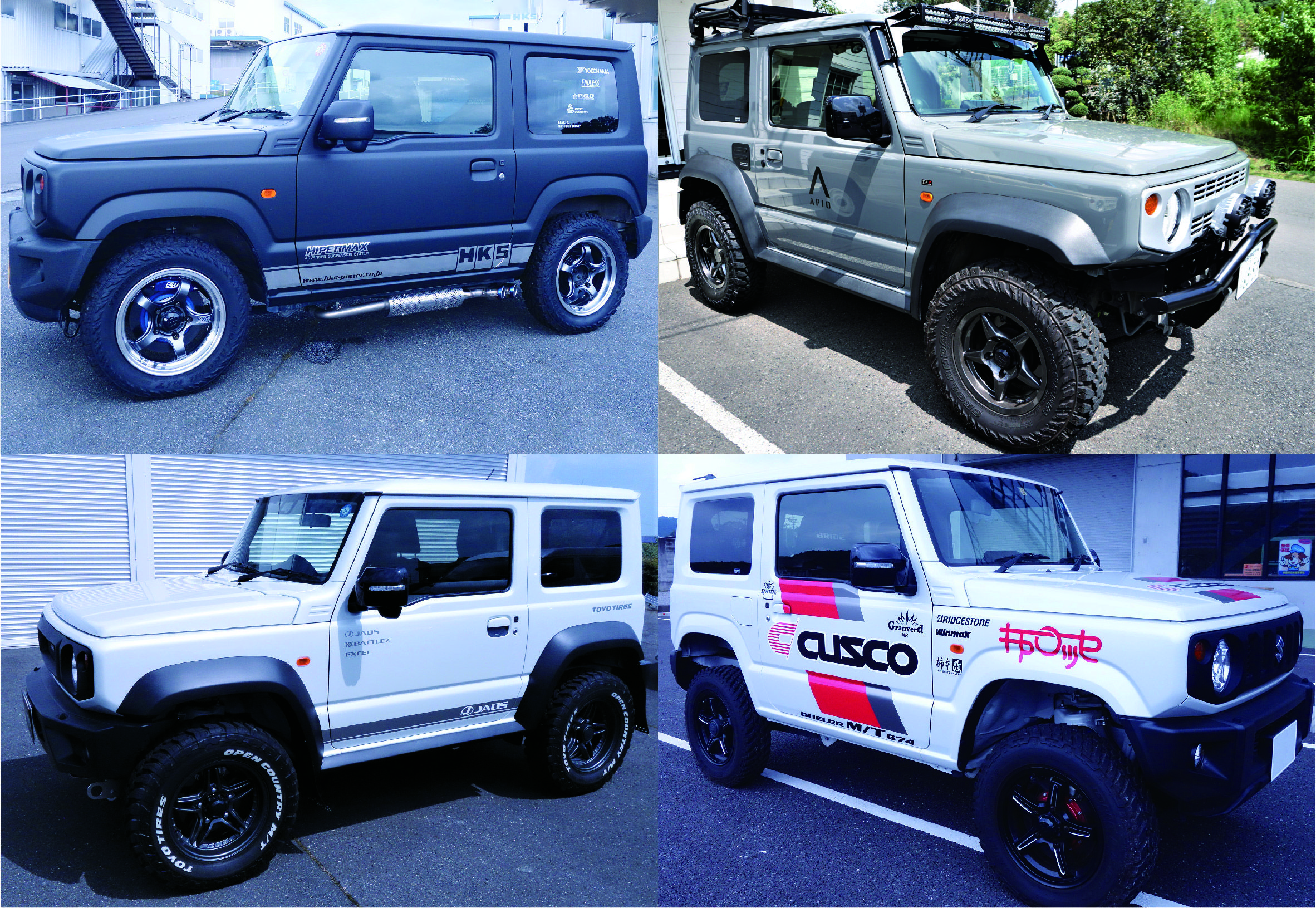 スズキの軽オフロード車「ジムニー」および排気量をアップした登録車の「ジムニーシエラ」は、過酷な林道を走るプロユースからアウトドアレジャーまで、さまざまな場面で活躍する4WD車の代表だ。2018年7月に全面改良して車両型式がJB64/74となった4代目では、水平・垂直基調のシルエットと丸型ライトを組み合わせた質実剛健なデザインが人気を博し、街乗りを楽しむ若者や女性にまでユーザーのすそ野を広げている。また、シンプルで頑丈な車体は拡張性に優れることから、さまざまなカスタマイズメーカーが、ジムニー向けにドレスアップやチューニングなどの各種商品を展開している。