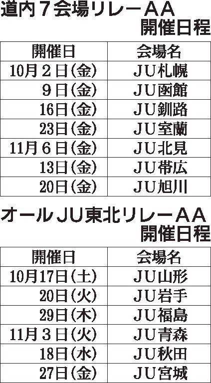 オールJU全国リレーAA、北海道10月2日から 「札幌」皮切りに7会場