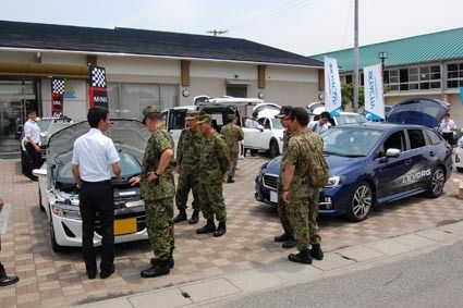 自衛隊駐屯地でミニモーターショー開催―。大阪府内の国産ディーラー8社と正規輸入車ディーラー3社は28日、大阪府和泉市の陸上自衛隊信太山駐屯地厚生センター前で合同展示会を開いた。個社や同一メーカー系列販社による職域展示会は珍しくないが、10...
