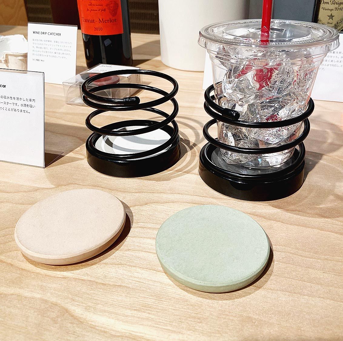 自然素材を用いた製品を発売するSoil(ソイル、石動博一社長、石川県金沢市)は、自動車の車内向けアイテムとして、珪藻土(けいそうど)を材料に使ったドリンクホルダー用コースター「コースターフォーカー」=写真㊨=と防水傘カバー=写真㊧=を発売...