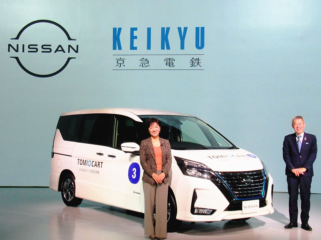 1日にニッサンパビリオン(横浜市西区)で開いた会見で、日産の星野朝子執行役副社長は「モビリティサービスの事業化までを見据え、どうすれば地域の活性化に役立つかを見極めるすごくいいチャンス」、京急電鉄の原田一之社長は「いろいろな移動手段の組み合わせの中で街の人が楽しく移動できると感じられることが街の活性化につながる」と実証プロジェクトへの期待を語った。