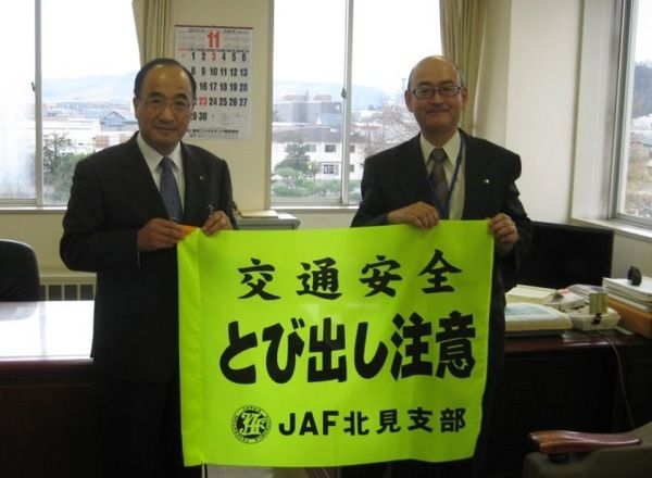 【北見】日本自動車連盟(JAF)北見支部(河合昭徳支部長)は、9月末で在籍3万会員を達成した。これを記念して管内の小中学校163校に交通安全旗を贈った。 1970年に支部発足、91年に在籍数が5千会員に達し、93年1万会員、96年2万会員...