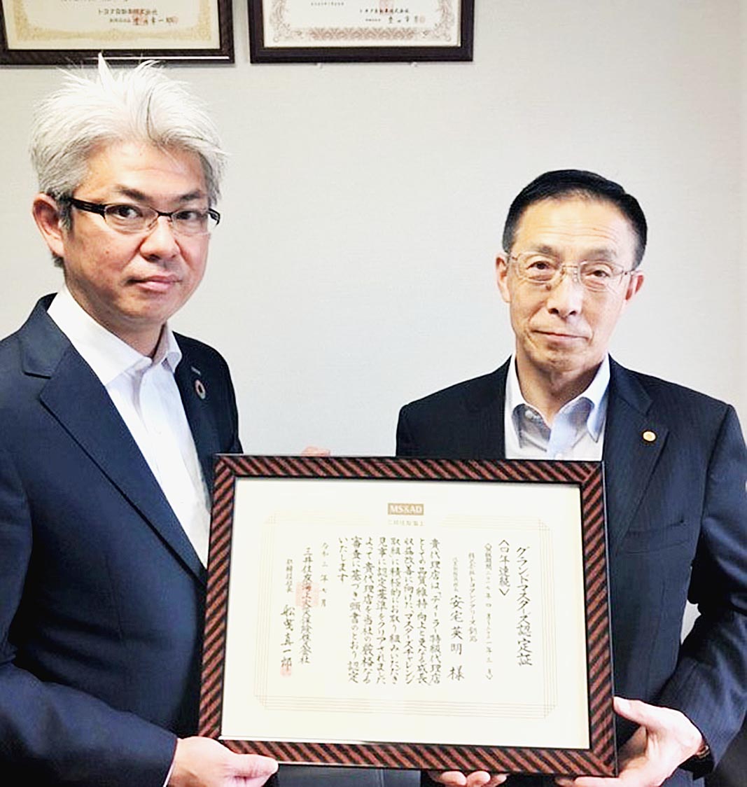 トヨタレンタリース釧路、三井住友海上からグランドマスターズ認定 道内トヨタレンタリース店で初