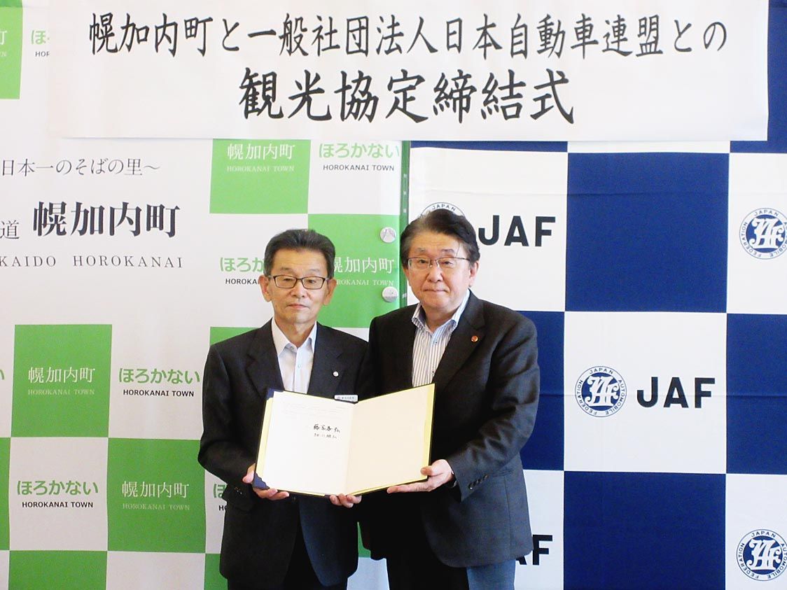 【旭川】日本自動車連盟(JAF)旭川支部(藤冨泰弘支部長)は、幌加内町と観光協定を締結した。 観光協定締結式は幌加内町役場で実施。そばの名産地として知られる同町の魅力を、JAFの広報媒体を通じて情報発信していく。席上、藤冨支部長は「さまざ...