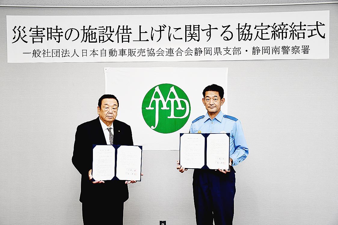 【静岡】日本自動車販売協会連合会(自販連)静岡県支部(芹澤正明支部長)は、静岡南警察署と「災害時の施設借上げに関する協定」を締結した。静岡県警察本部は、南海トラフ巨大地震や台風による河川の氾濫の水害などの災害で県内の警察署庁舎が機能不全に...