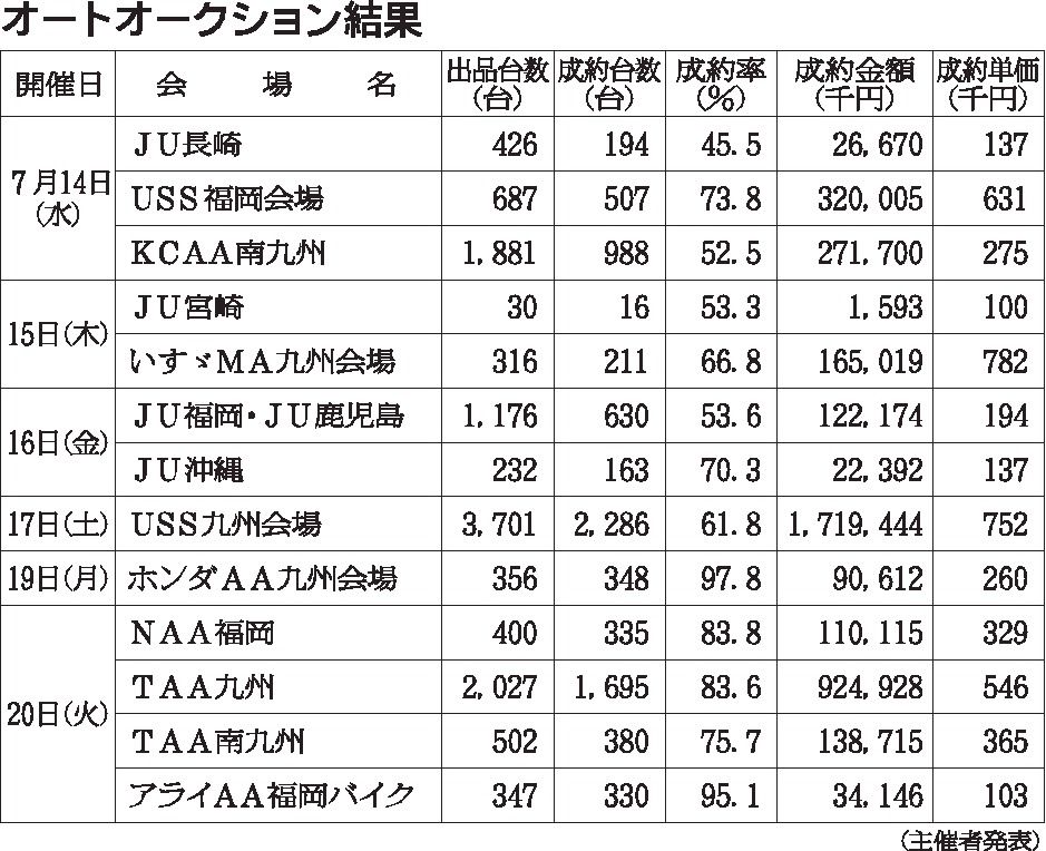 〈オートオークション結果〉九州地区 2021/7/14~20