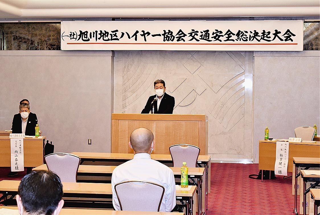 【旭川】旭川地区ハイヤー協会(柏葉健一会長)は、大雪クリスタルホールで「令和2年度交通安全総決起大会」を開催。会員各社の代表者ら約30人が出席し、安全で快適な旅客輸送の徹底を再確認した。出席者はコロナ禍で例年より絞り込んだ。 柏葉会長は「...