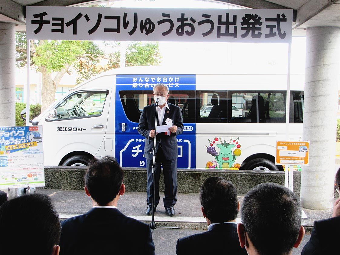 予約制乗合ワゴン「チョイソコりゅうおう」の出発式が、滋賀県竜王町総合庁舎正面玄関で行われた。日本自動車販売協会連合会(自販連)滋賀県支部とトヨタ自動車、アイシン精機、滋賀県など官民一体で取り組んできた「滋賀県版MaaS(サービスとしてのモ...