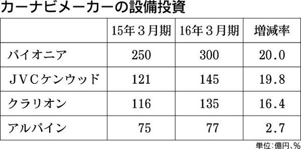 カーナビゲーションメーカーでは、2015年度の設備投資額を前年度に比べて増加させる計画が目立つ。その中心は設備更新や金型変更など、例年通りの内容。だが、大型受注に伴う先行開発投資や円安進行による国内生産回帰に合わせた工場増強の動きがあらわ...