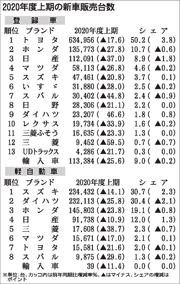 〈2020年度上期の新車販売台数〉