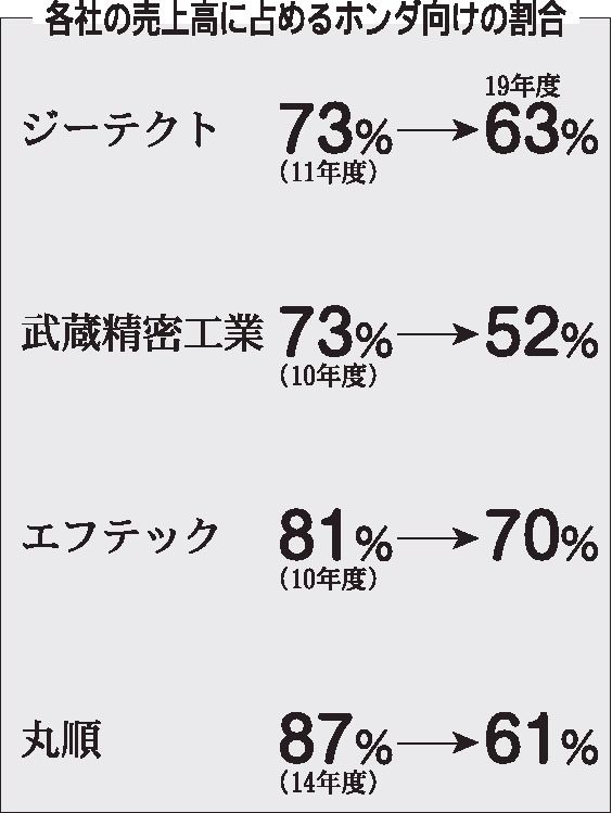 ホンダ系部品メーカーは、ホンダ以外の完成車メーカーからの新規受注獲得を拡大してきた。四輪事業の不振で落ち込んだホンダ向けの余力を、他メーカー向けの生産に振り分けている。ホンダ以外の受注獲得は長年課題に挙がっていたが、「ホンダ系であっても、...