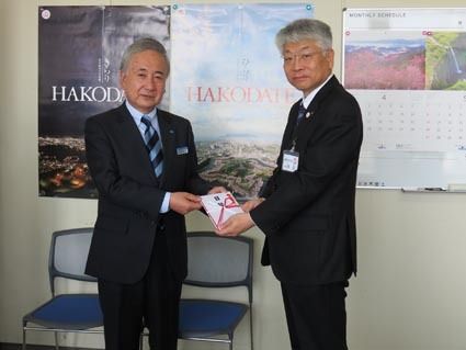 【函館】ネッツトヨタ函館(船橋賢一社長)は「Netz交通安全プロジェクト」で昨年1月~今年3月に積み立てた交通安全基金39万1400円を函館市に寄付した。寄付金は交通安全運動教育で使われる自立式信号機の購入などにあてられる。寄付は昨年に続...