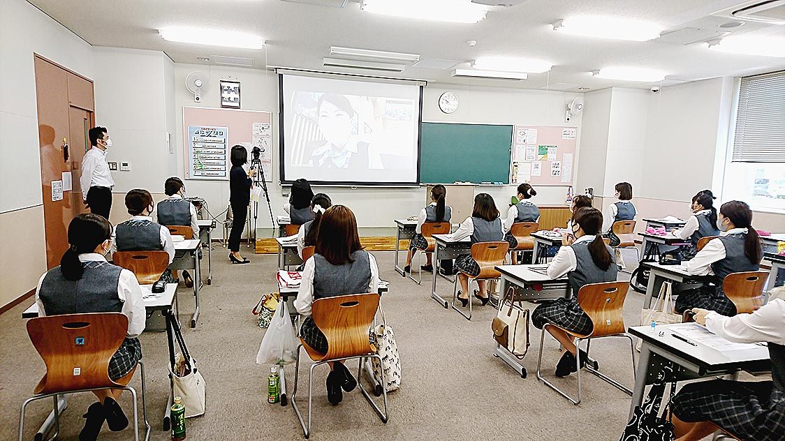 【名古屋】トヨタ名古屋自動車大学校(川口浩二校長)は、清須市の同校で実施した講義「お客様応対ロールプレイング」内で、同校初となるリモートコンテンツを使ったディーラーとの連携授業を行った=写真。ショールームスタッフ科の学生22人とディーラー...