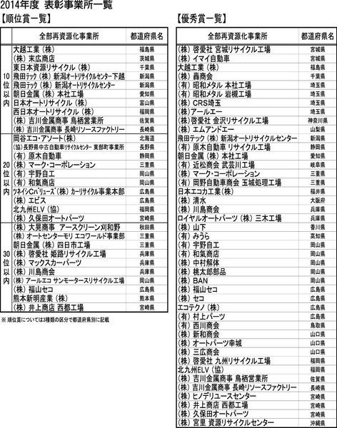 豊通リサイクル(小松原充社長、神奈川県綾瀬市)は自動車リサイクル法31条に基づき、THチームが委託する全部利用再資源化事業所の2014年度実績の表彰を行った。 表彰制度は07年から実施。コンソーシアムとして登録しているプレス事業者(破砕前...