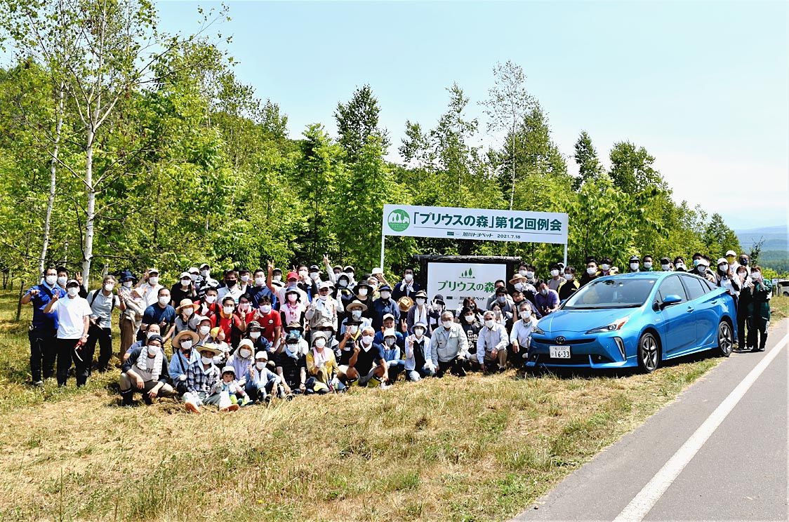【旭川】旭川トヨペット(遠藤穣社長)は「プリウスの森」第12回例会を東川町で開催した。同社ハイブリッドカー(HV)ユーザーと社員ら101人が参加し、下草刈りに汗を流した。 同社と東川町が2009年に協定。町の所有する山林用地1㌶にミズナラ...