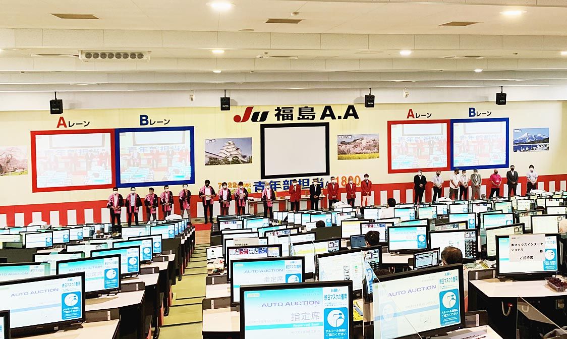 【福島】JU福島(橋本一男理事長)は、福島市の常設中古車オークション(AA)会場で「青年部担当AA」を開催した=写真。目標には及ばなかったものの、1600台を超える出品を集めた。 競り前のセレモニーであいさつに立った矢部博青年部会長は、「...