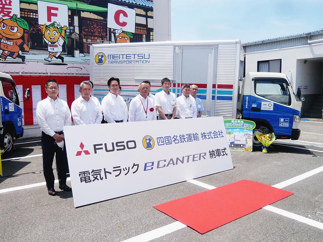 【松山】名鉄運輸グループの四国名鉄運輸(白方寿人社長)と三菱ふそうトラック・バスは、電気小型トラック「eキャンター」2台の納車式を松山市内の四国名鉄運輸本社で開催した。同型車の導入は国内で71台目となり、四国地区では初めて。航続距離は10...