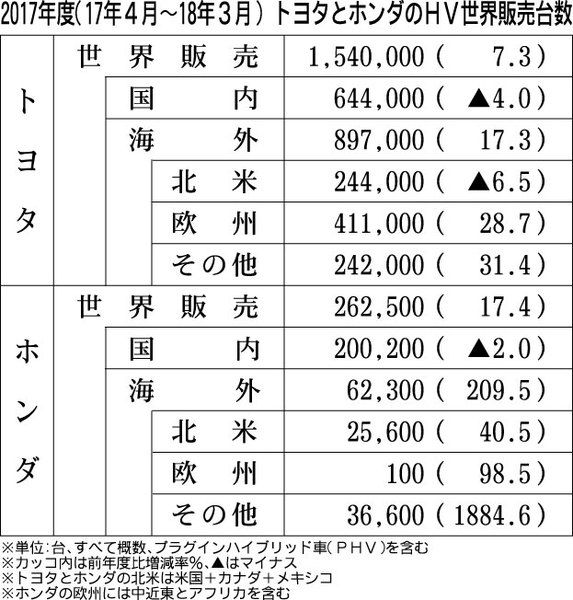 ■トヨタ過去最高、国内は一服感 トヨタ自動車とホンダがハイブリッド車(HV)の販売を堅調に伸ばしている。両社ともに2017年度のHV世界販売は、HVモデルを持つ新型車の投入や設定車種の拡大などで前年度実績を上回った。海外のHV販売が好調で...