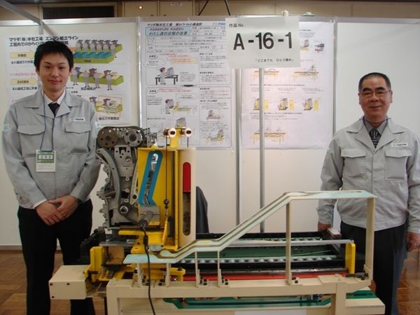 【広島】マツダは、本社・宇品工場で日本プラントメンテナンス協会主催の「からくり改善工夫展2010」で、最優秀からくり改善賞を受賞したエンジンボルト仮締め自動化装置「どこでも ひとり締め」のモデルなどを披露した。 同装置は同社の第2パワート...