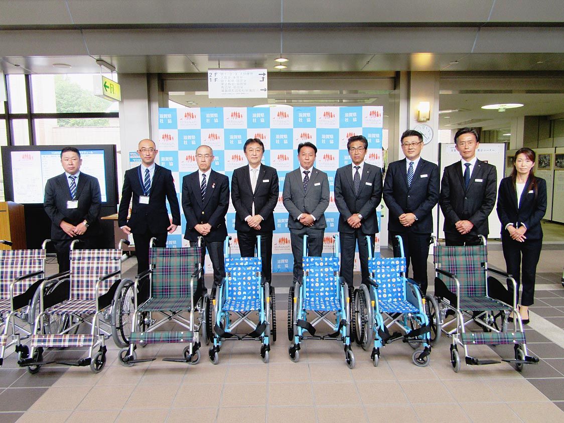 【大津】滋賀日産(酒井雄一郎社長)は、県立長寿社会福祉センター(草津市)で行われた贈呈式で、滋賀県社会福祉協議会に車いす19台を寄贈した。同社は10年前から寄贈を続けており、累計で200台を超えた。 式典で酒井社長が社福協の丸山英明副会長...