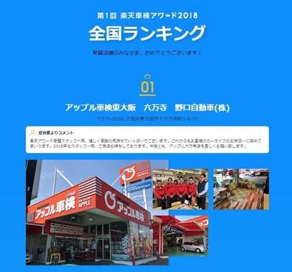 楽天は「第1回楽天車検アワード2018」をこのほど公表し、総合トップに「アップル車検東大阪 六万寺 野口自動車」(大阪府東大阪市)を選んだ。口コミや価格などの評価を表彰する初の取り組みで、野口自動車は「来店した皆さんのおかげで賞を取ること...