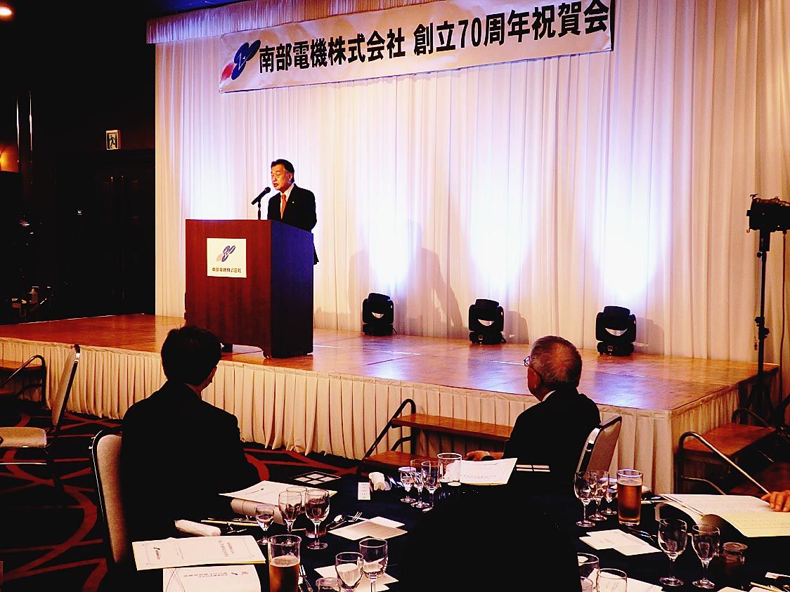 【青森】青森県八戸市の大手自動車電装サービス事業者の南部電機(塚原隆市社長)は5日、八戸市で「創立70周年記念祝賀会」を開催した=写真。当日は取引先をはじめ、電装メーカーや地域関係者ら約280人が出席、同社の節目を祝った。 同社は1950...