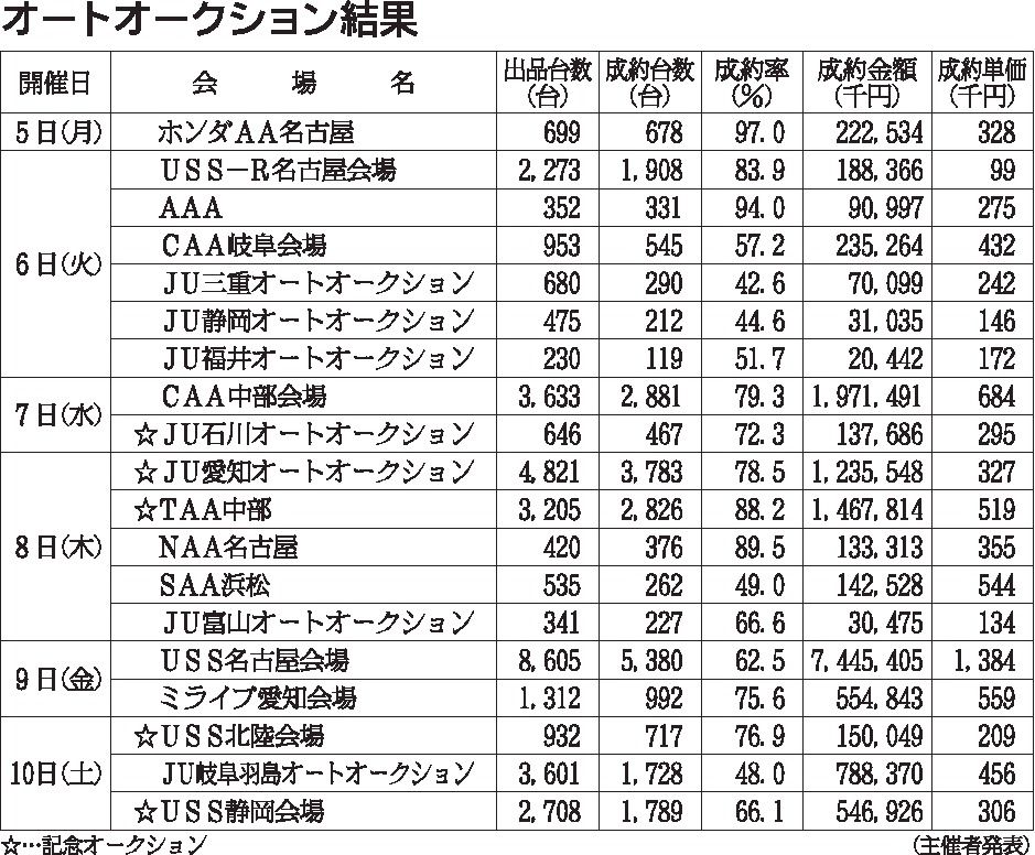 〈オートオークション結果〉中部地区 2020/10/5~10