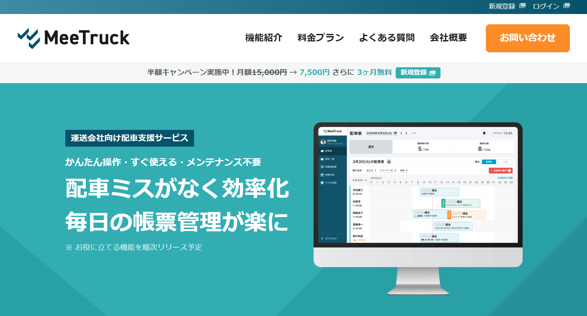 ミートラックが提供を開始したサービスは、トラック輸送を担う物流事業者向けのクラウド型配車支援サービス。受注した運送業務の案件登録やトラックの割り当て、勤務計画表の作成などを、場所や時間にとらわれずウェブアプリケーション上で誰でも簡単に行うことができ、デジタルデータとして一元管理できる。今後は、サービス利用者の要望をもとに柔軟にサービスの開発・改善を行い、受発注や実績管理などの機能を拡充していく。