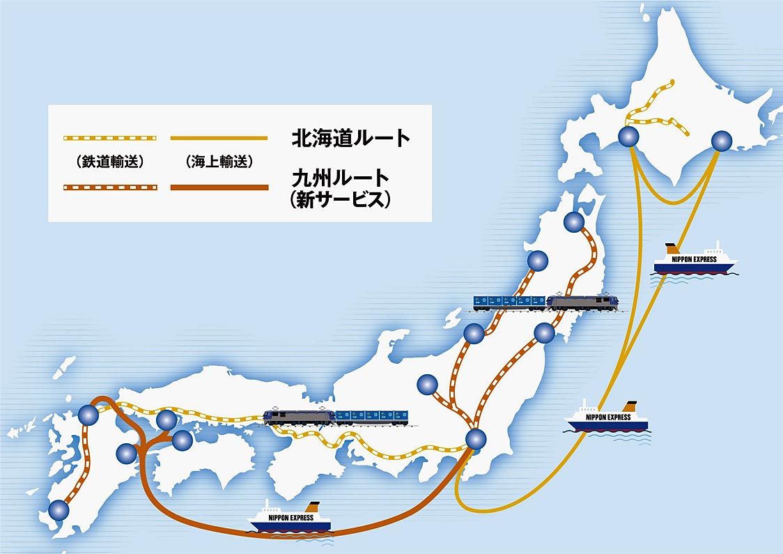 日本通運は3日、国内複合一貫輸送サービス「シーアンドレール九州ルート」を発売開始したと発表した。従来の「シーアンドレール北海道ルート」に新たに九州ルートを追加することで、輸送ルートを複線化した。太平洋側を北海道から九州までつなぐことで輸送ルートの選択肢を広げ、さまざまなニーズに対応可能な体制を整えた。