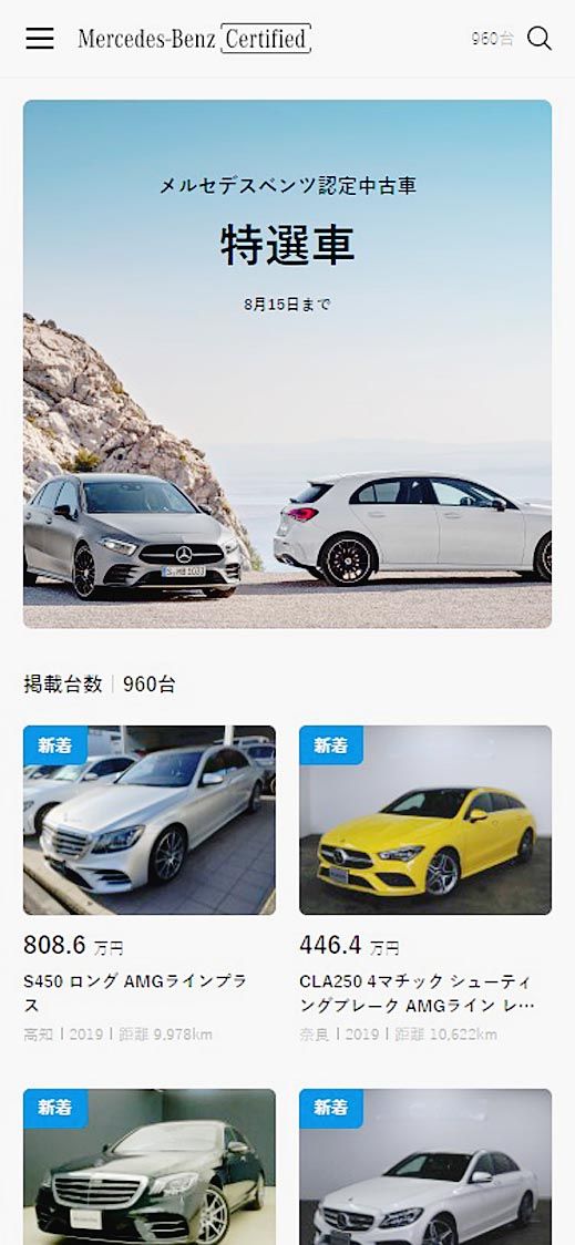 ヤナセ、メルセデス・ベンツ認定中古車の公式ウェブサイト刷新 スマホでの操作性向上 動画や写真にこだわり