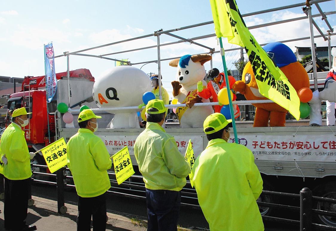 【札幌】札幌市豊平区月寒の国道36号で、地域の新車ディーラーなどの従業員ら約500人が参加した交通安全の街頭啓発が行われた。パトカーを先頭にキャラクターによるパレードも行われ、スピードダウンなどを呼びかけた。 東月寒まちづくり協議会「童夢...
