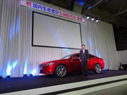 マツダは28日、国内生産累計が15日で5千万台に到達したと発表した。1931年10月に三輪トラックの生産を開始して以来、86年7カ月での達成になる。防府工場(山口県防府市)で行った記念式典で小飼雅道社長は、「年間約100万台を生産しても5...