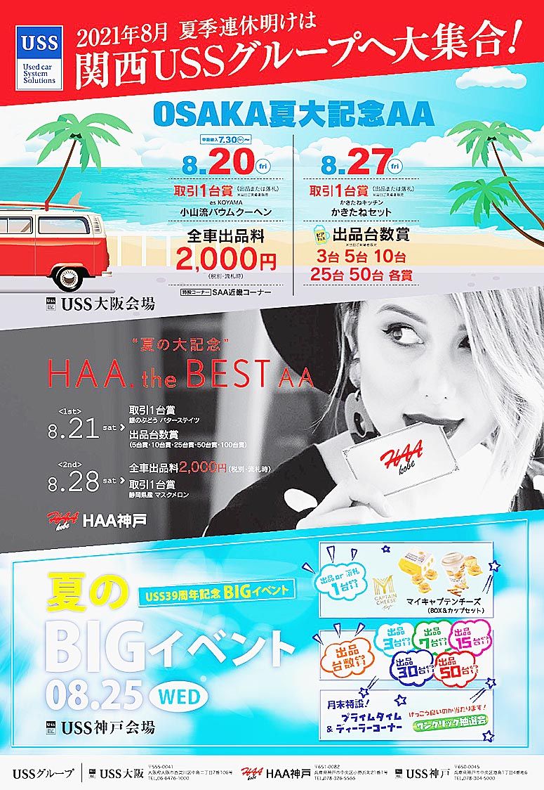 ユー・エス・エス(USS)が運営する近畿地区の中古車オークション(AA)3会場は、盆休み明けのAAで多様なイベントを繰り出し、競りの盛り上げを図る。「夏季連休明けは関西USSグループへ大集合!」と銘打ち、3会場でイベント内容が重複しないよ...