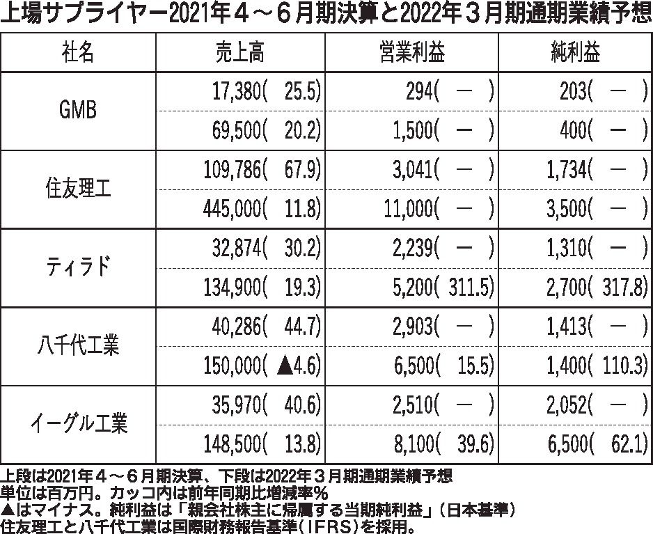 〈上場サプライヤー2021年4~6月期決算と2022年3月期通期業績予想〉