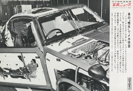 初心者ドライバーに自動車のメカニズムを知ってもらうために用意されたのは、実車のカットボディーだ。今でこそカットボディーはいろいろな展示会で見かけるが、当時は一般ユーザーが自動車の機構や部位の名称、機能を理解する上で斬新だったに違いない。現...