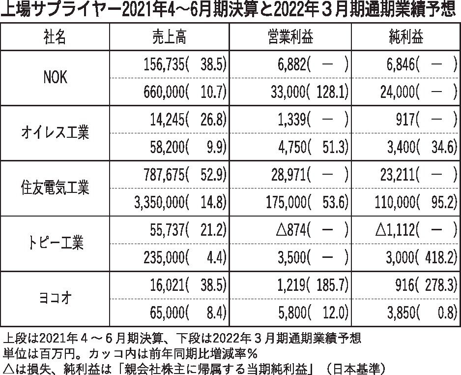 〈上場サプライヤー2021年4~6月期決算と2022年3月期通期業績予想〉