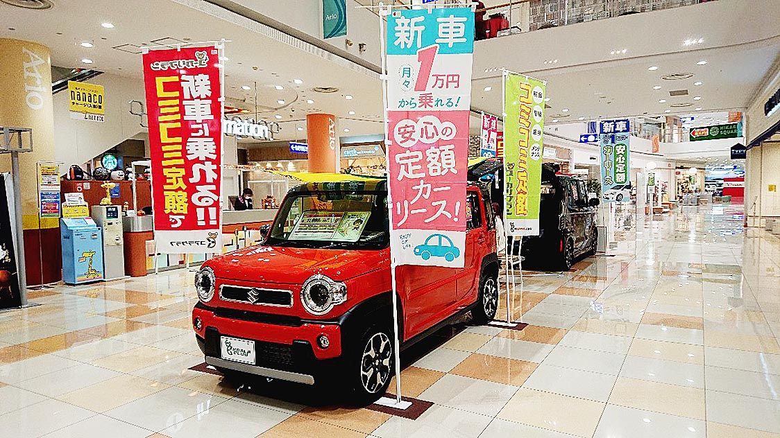 【大阪】大手中古車専業者の関西オート(大川博正社長)は、大型商業施設のアリオ八尾(八尾市)でオートリースのイベントを開催した=写真。2台の軽自動車を展示し、同社が推進する新車リースを来場者にアピールした。 「超ビックイベント新車リース特販...
